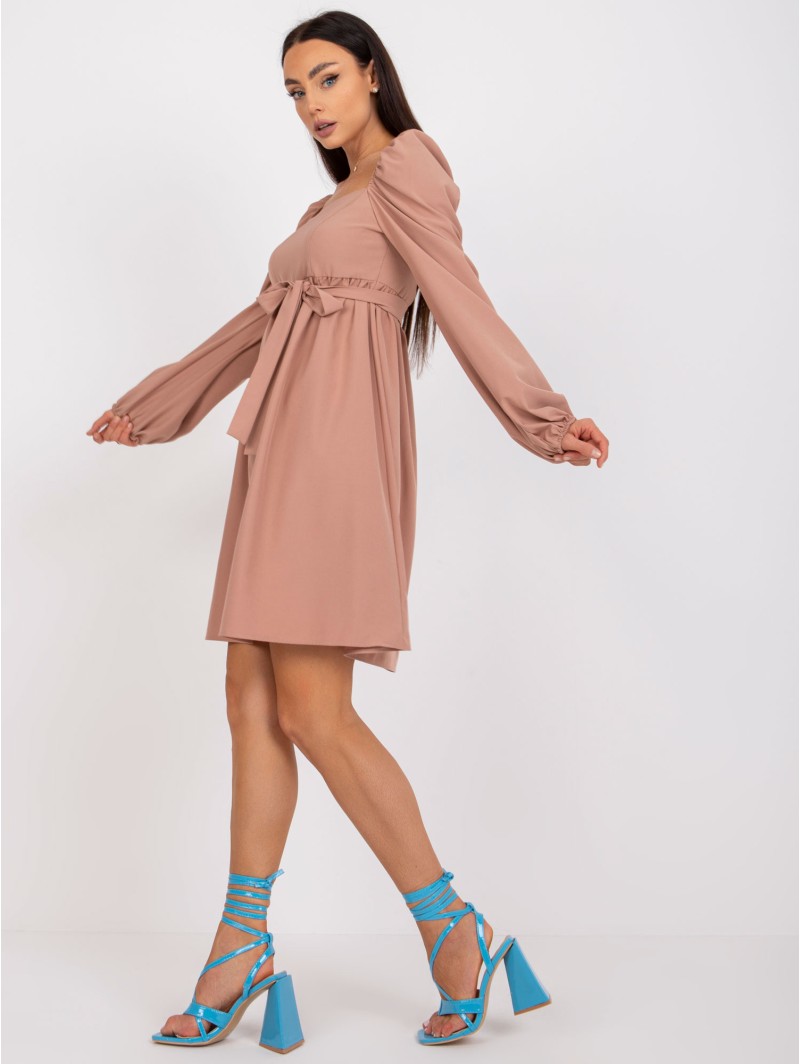 Suknelės 36 dydžio išmatavimai: krūtinė - 40 cm, bendras ilgis - 86 cm, rankovių ilgis - 63 cm.