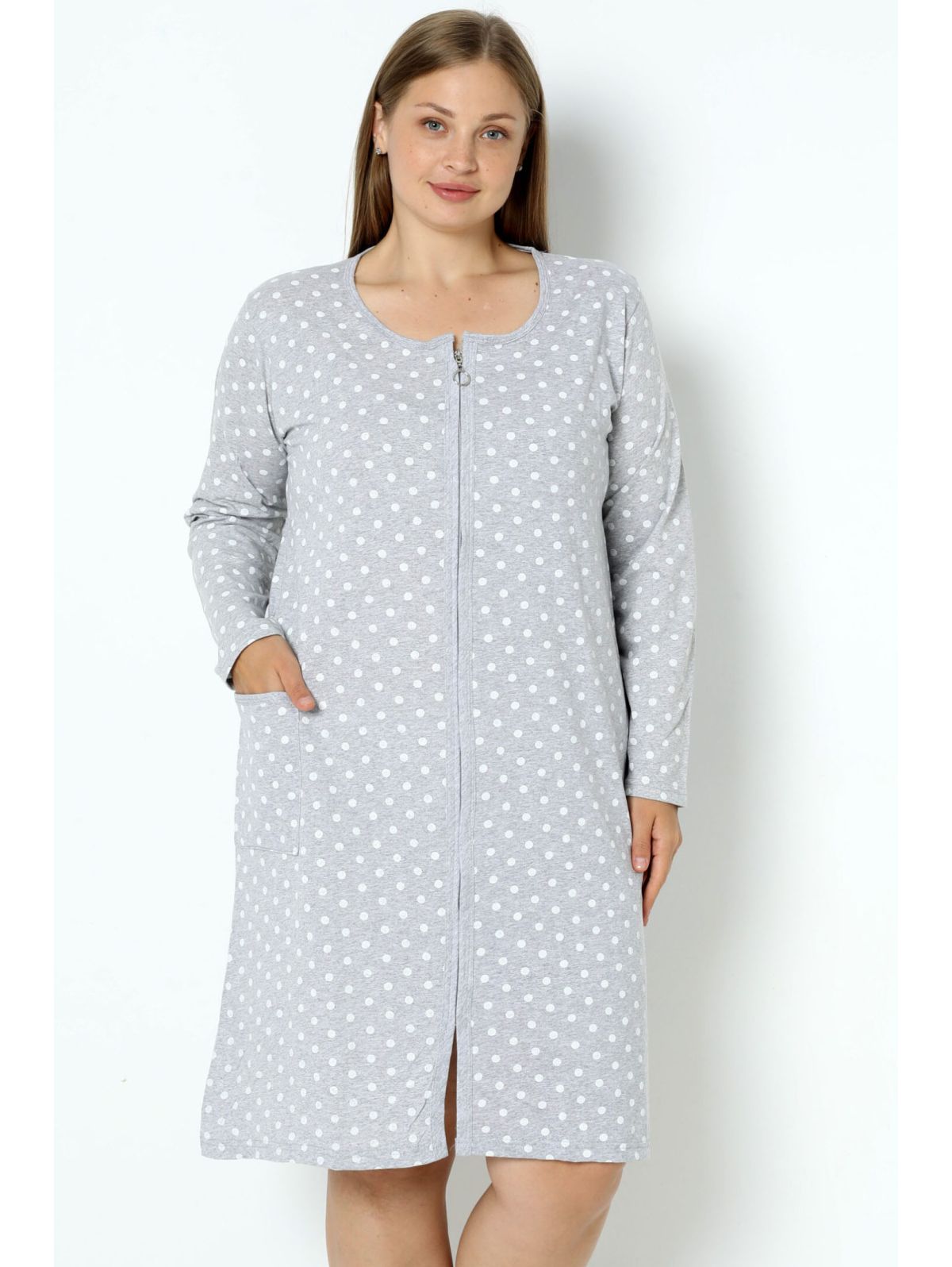 Хлопковый халат с карманами и молнией