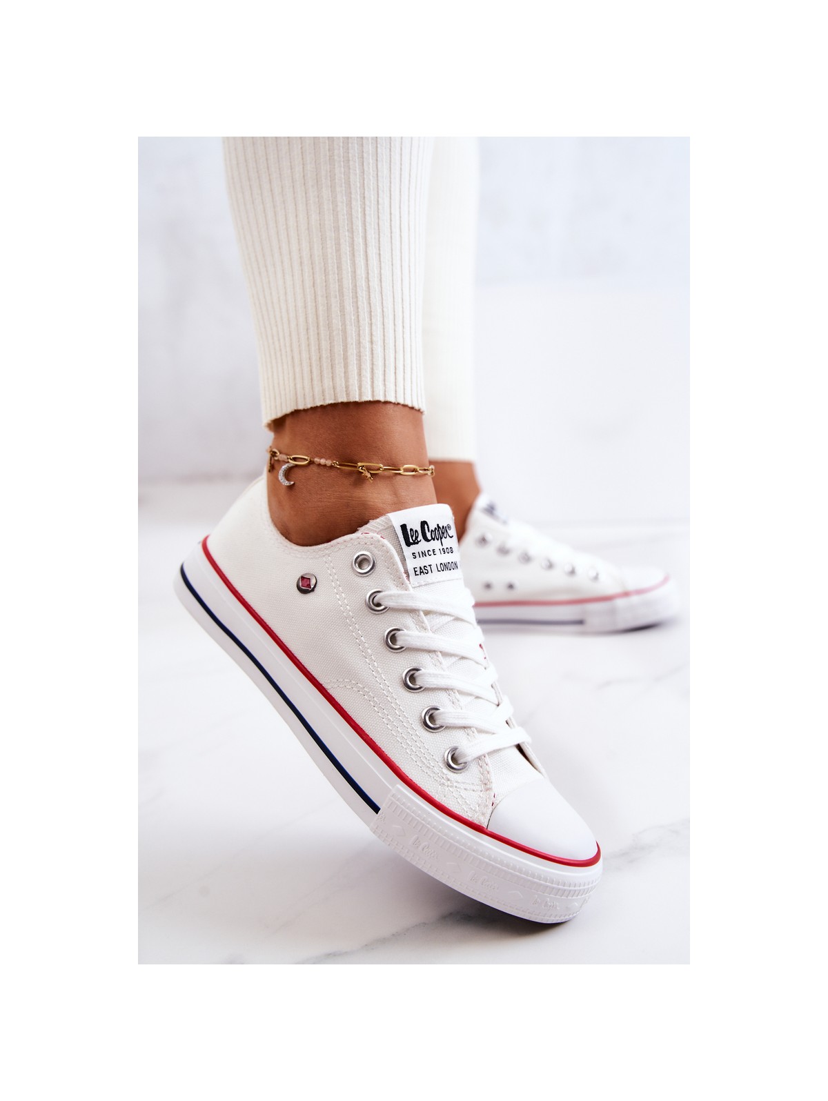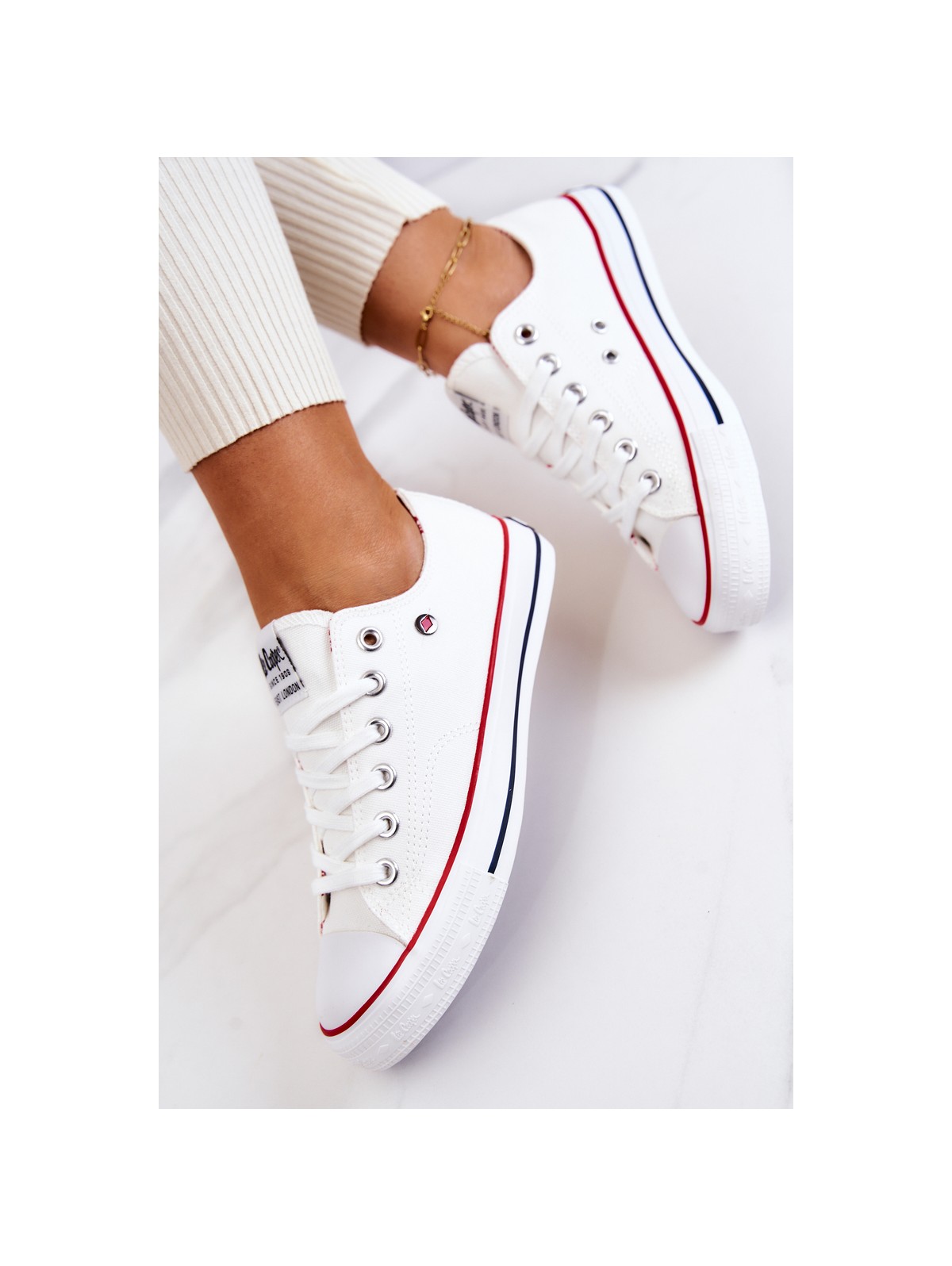 Moteriški Lee Cooper sportbačiai. Klasikinis modelis puikiai derės prie džinsų, bet ir prie erdvių suknelių. Batai turi minkštą, medžiaginį vidpadį ir neslidų padą. Surištas modelis. Pirštas sustiprintas guma. Būtinai peržiūrėkite visą mūsų Lee Cooper batų kolekciją. Renkantis dydį, naudokite dydžių lentelę.